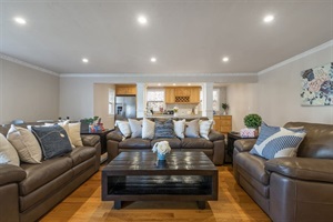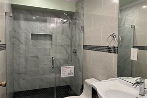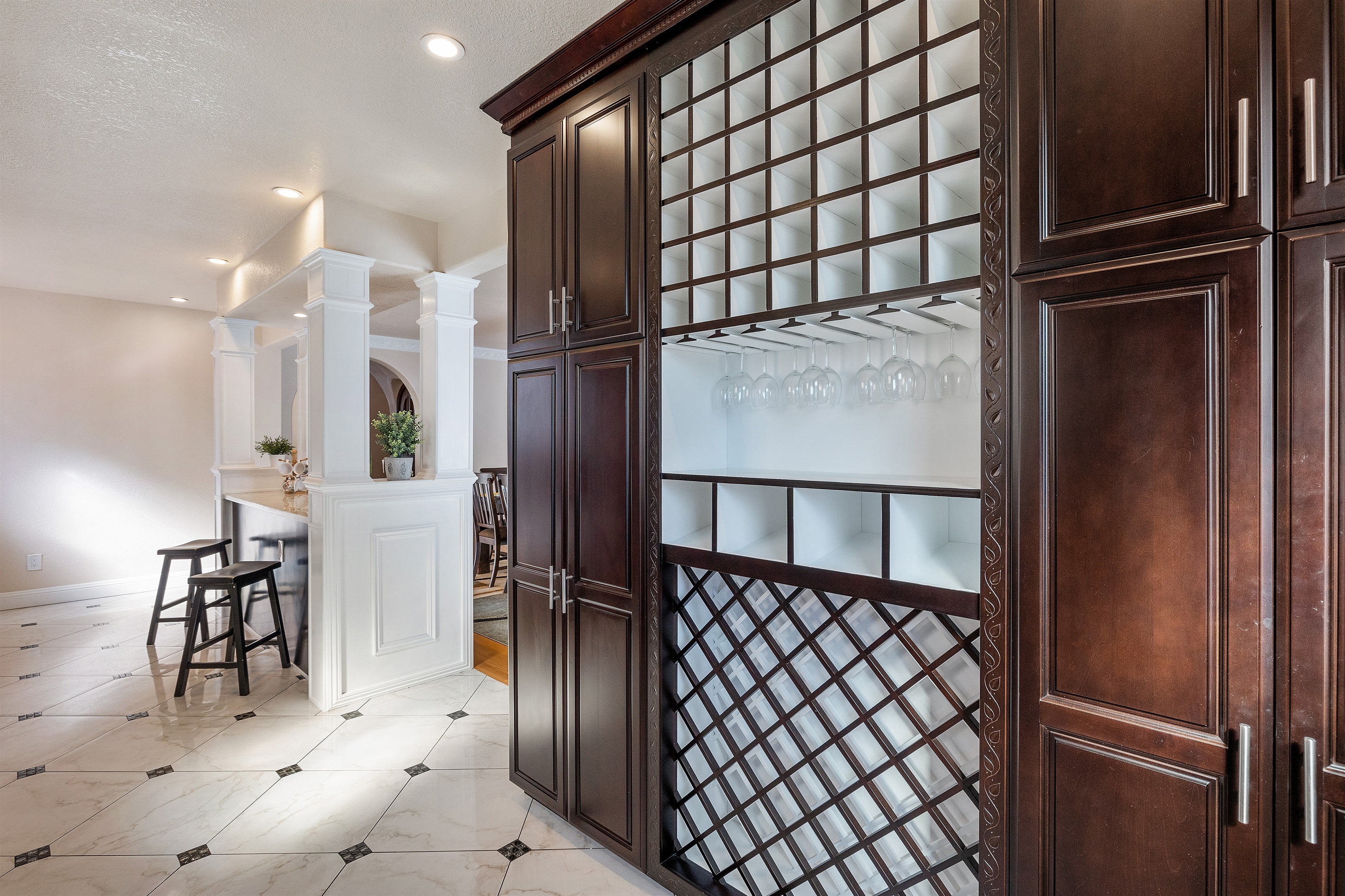 There is a full kitchen on the upper floor and a kitchenette with a coffee maker, a microwave oven, and a refrigerator with a filtered water dispenser on the lower level. Enjoy a glass of wine or 2 while chit-chatting with your friends or family members at our bar counter. Just bring your bag!