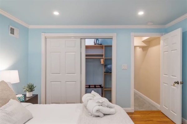 - Closet space in every bedroom with hangers and hotel-style folding luggage racks