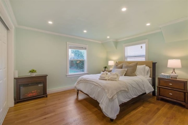 The house is a remodeled luxury 2-level home. There are 2 bedrooms and 2 bathrooms on the second floor and 2 bedrooms with 2 bathrooms on the first floor. This will be an ideal place to stay for a small group of FAMILIES or PROFESSIONALS who want to explore Northern California on their terms and at their own pace and relax at a luxurious Airbnb after the day. Our home has 2 fully furnished bedrooms and 2 baths fully stocked with essentials (towels, shampoo, conditioner, etc). It has a cozy living room with a large, comfortable sofa where a family or group of friends can watch Netflix, their favorite TV show, or a movie from. You can also use the indoor fireplace to feel warm.