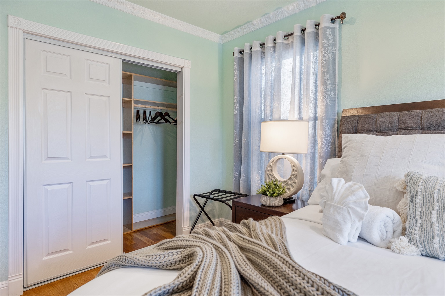 - Closet space in every bedroom with hangers and hotel-style folding luggage racks