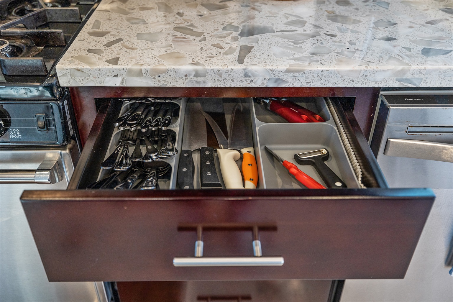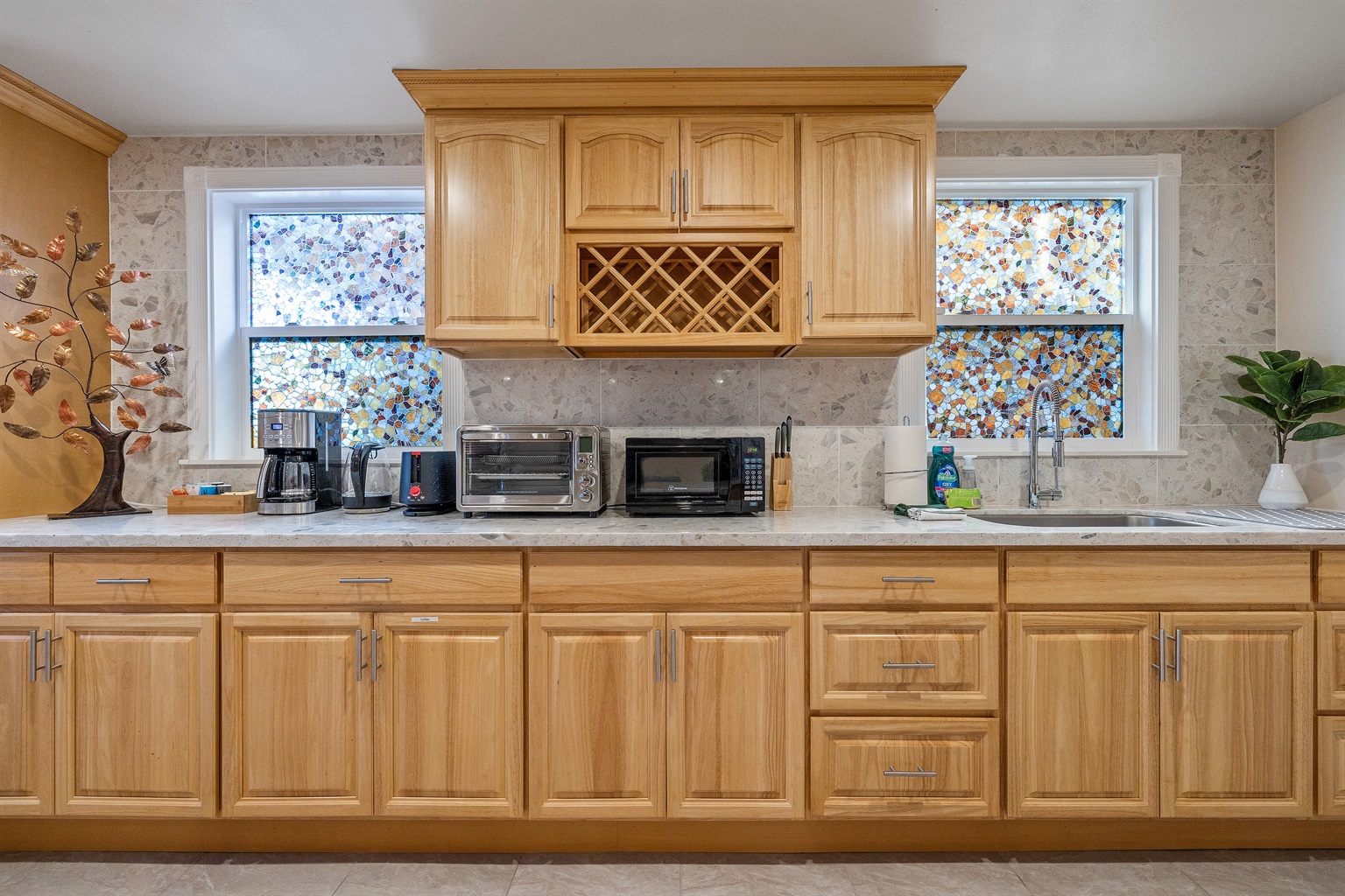 There’s also a full kitchen with a coffee maker, a microwave oven, a dishwasher, and a refrigerator with a filtered water dispenser. Enjoy a glass of wine or 2 while chit-chatting with your friends or family members at our bar counter. Just bring your bag!